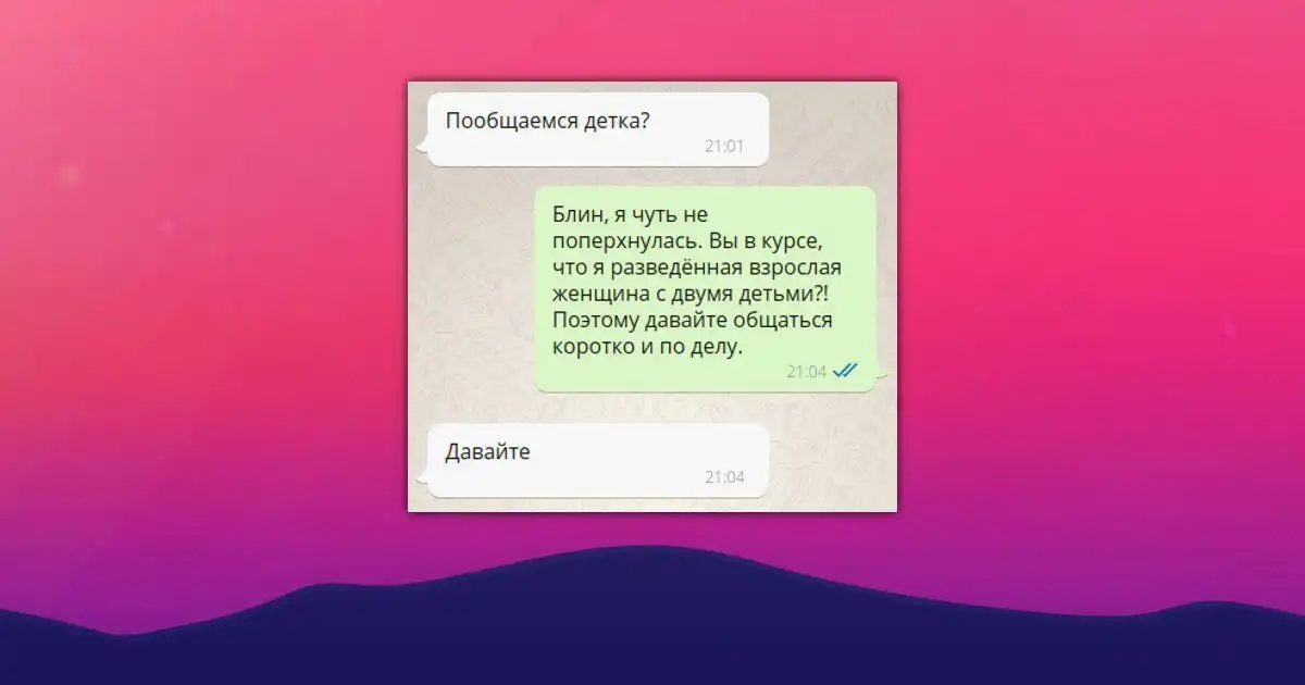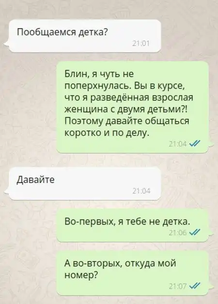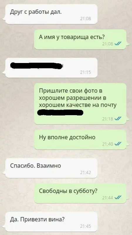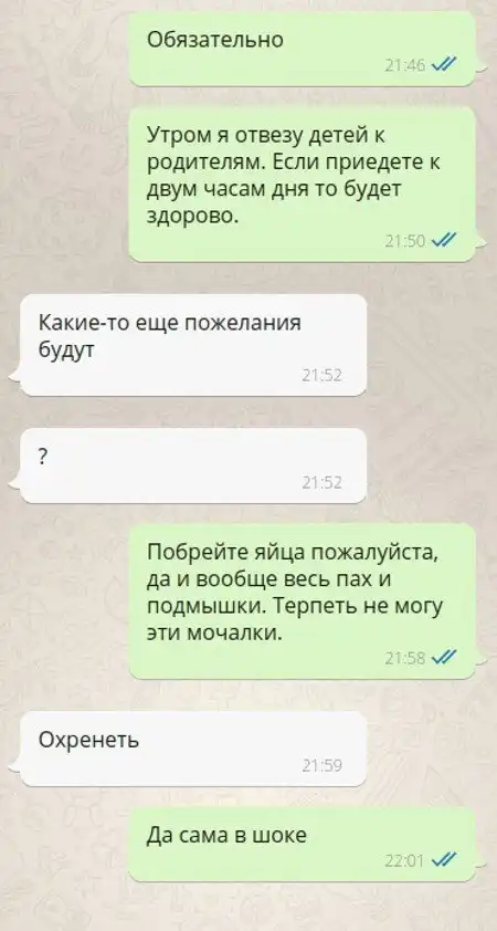 Самый сок в том, что переписку выложила женщина. Видимо, всё сложилось удачно.