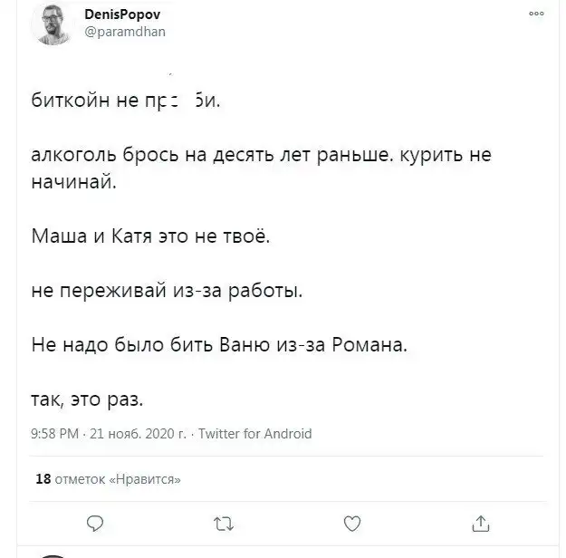 Давайте пофантазируем. Чтобы вы сказали самому/самой себе, будь у вас возможность вернуться в прошлое? Какой совет может в корне изменить жизнь? Пользователи Твиттера уже подхватили эту тему, присоединяйтесь и вы!