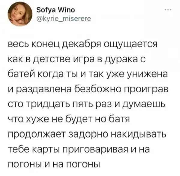 А вот и новая подборка твитов спешит, чтобы поднять вам настроение в этот предновогодний час. Все уже с нетерпением ждут конца злосчастного 2020-года. Уже завтра мы наконец-то сможем поднять бокалы и выдохнуть. А пока давайте зарядимся позитивом и посмотрим, что там шутники из Твиттера принесли на этот раз.