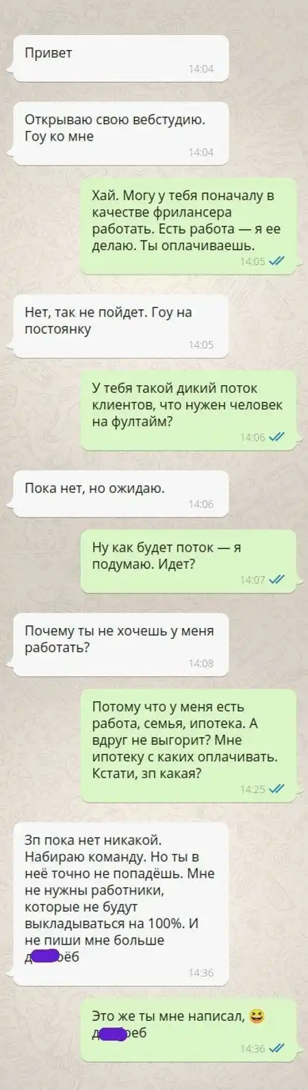 Когда ты решил замутить свою веб-студию, но "нормальные" люди всё не хотят у тебя работать. Интересно, с чего бы это?