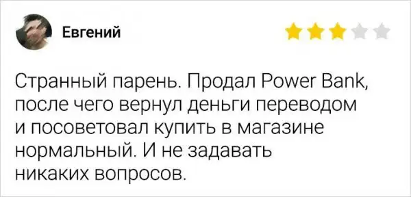 Порой, отзывы людей в интернет-магазинах могут запросто затмить любой товар. Как бы не старался производитель с описанием товара или услуги, клиент всегда будет больше доверять комментариям реальных покупателей. Особенно, когда они пишут такие отзывы.