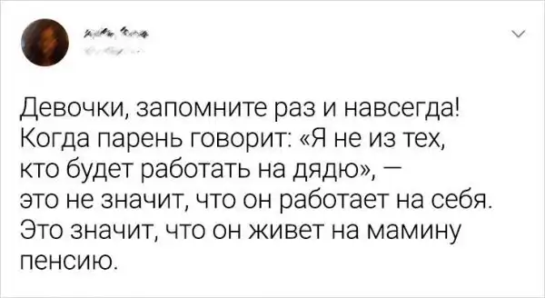 Уже давно известно, что девочки взрослеют быстрее мальчиков. И речь идет не только о физическом развитии. Даже будучи взрослыми, многие мужчины остаются мальчишками. Поэтому многим дамам приходится с ними нелегко. А преодолевать разные житейские ситуации им помогает ирония и капля сарказма.