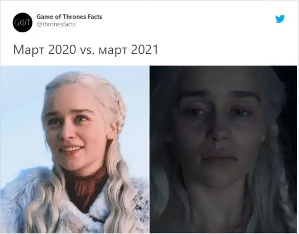 Да, 2020 год человечество еще не скоро забудет. Во многом благодаря пандемии. Ведь именно в марте весь мир заговорил о злосчастном коронавирусе. И вот, на календаре снова март, и за это время многие успели распрощаться с невероятным количеством нервных клеток. Весь спектр своих эмоций пользователи Твиттера выразили во флешмобе "Март 2020 и март 2021".