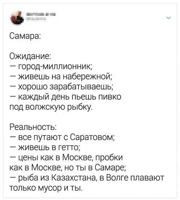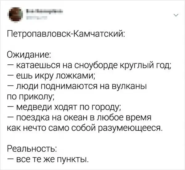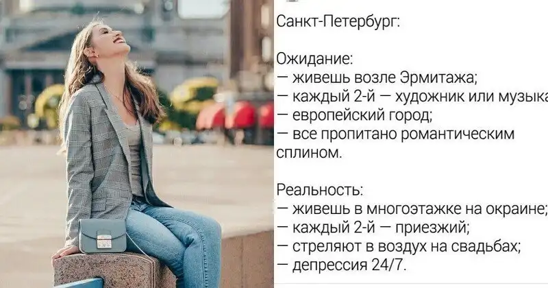 В Твиттере рассказали о жизни в самых разных городах в формате "Ожидание VS Рeaльнocть". Конечно, тред стоит воспринимать с юмором, однако доля истины в постах пользователей все-таки есть.
