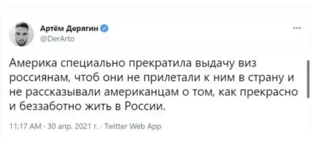 Под занавес прошлой недели поступила новость о том, что США прекратили выдавать россиянам визы из-за очередного политического скандала. Правда, некоторые пользователи не особенно расстроились из-за этого, а даже обрадовались. Вот порция шуток и мемов.
