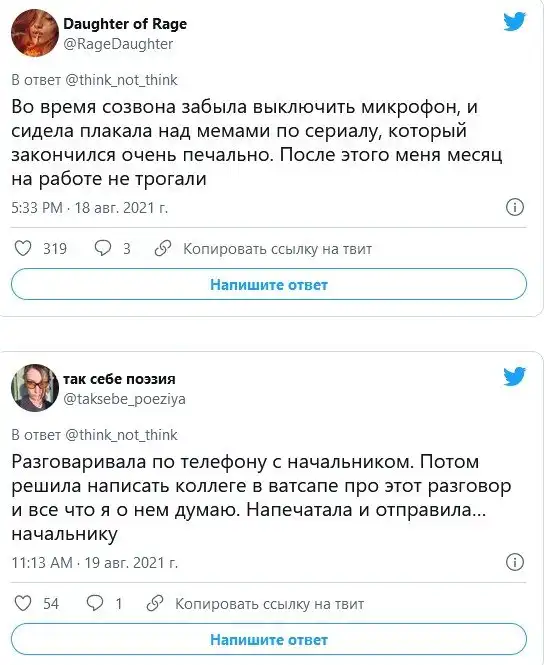 Пользователь твиттера под ником «Дипмиссия Уругвая» запустил тред с самыми нелепыми и стыдными ситуациями, которые происходили на рабочих созвонах и в чатах с коллегами. Народ шустро откликнулся в комментариях — некоторые из описанных случаев просто золото.