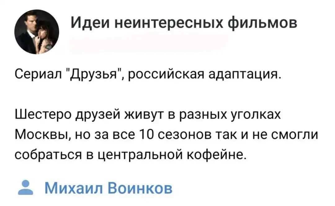 Перешлите этот пост знакомым голливудским продюсерам или членам Фонда кино.