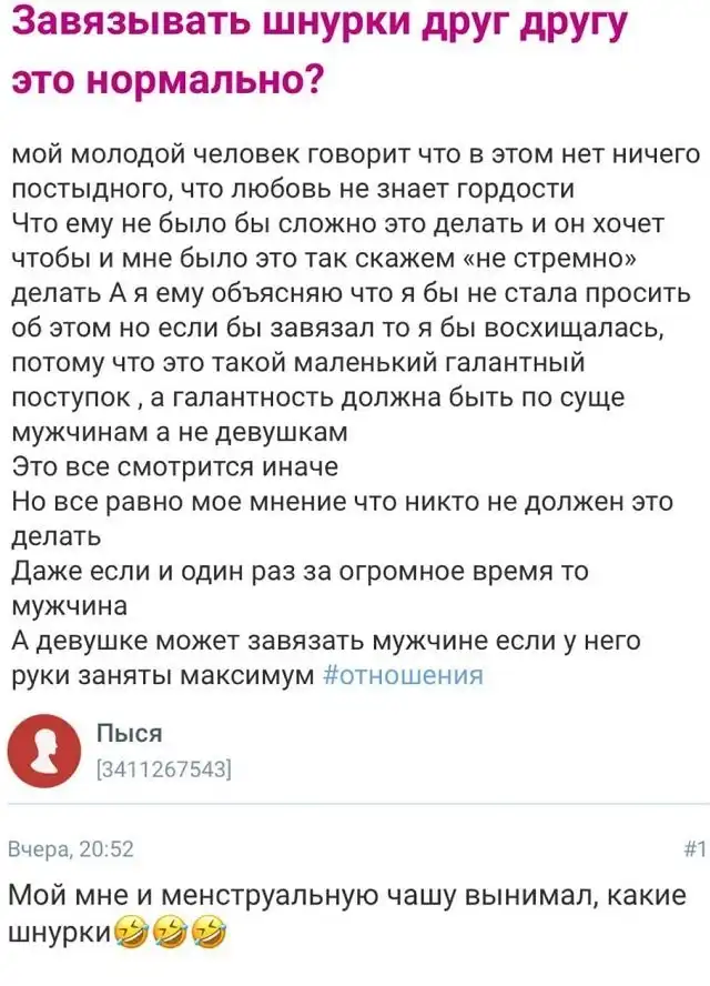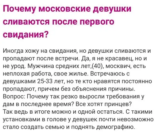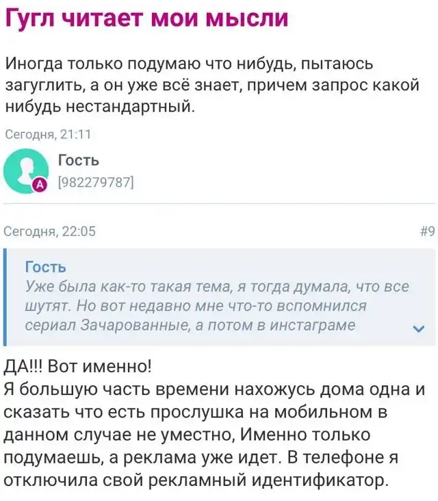 Многие мужчины хотели бы читать мысли женщин, как Мэл Гибсон в фильме "Чего хотят женщины". Но в действительности это дурная затея, ибо лучше этих мыслей не слышать. Порой девушки задаются такими странными и безумными вопросами, что самому можно сойти с ума. Специально для таких размышлений существуют женские форумы, где всегда творится что-нибудь странное.