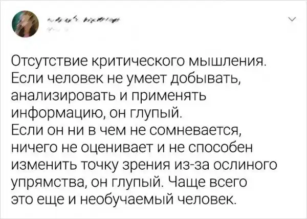В Твиттере, конечно, очень любят пошутить. Но так же там нередко собираются треды, в которых пользователи размышляют и философствуют. На этот раз они поделились своими критериями, по которым они определяют глупого человека.
