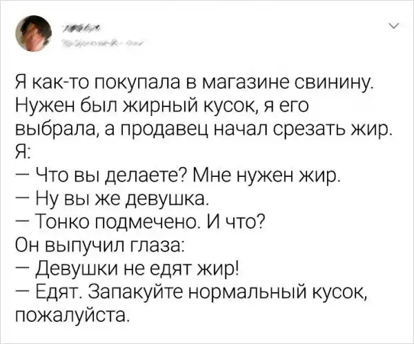 Казалось бы, в наши времена уже пора бы избавиться от таких фраз, как: "ну ты же девушка" и "ну ты же мужик". Все эти предрассудки всегда мешали людям быть собой и жить так, как им нравится. Но молодых парней и девушек продолжают давить стереотипными моделями поведения. Особенно люди старшего поколения. Однако, не стоит все восприниматься всерьез. Неконструктивную критику лучше всего воспринимать с юмором, как авторы этих забавных твитов.