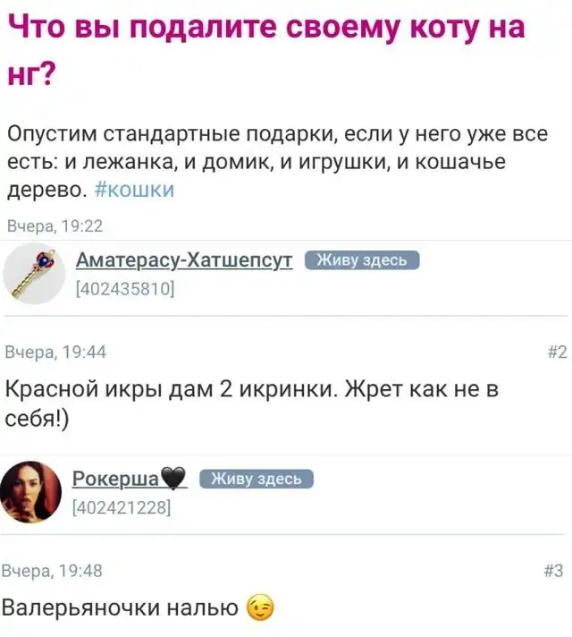 Что подарить коту на Новый год? Может ли стоматолог вколоть вакцину от коронавируса вместе с обезболивающим? Да, это снова мракобесие с женских форумов, где дамы сводят с ума человечество своими странными вопросами. Давайте поглядим, что они приготовили нам сегодня.