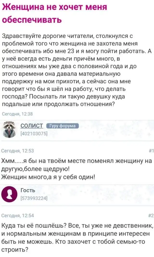 А вот и новые безумные истории с женских форумов. От их переживаний и рассказов сойдет с ума даже опытный психолог и психотерапевт. Поэтому барышни (и некоторые мужчины) ищут мудрости и коллег по несчастью на тематических форумах. Давайте поглядим, что их тревожит сегодня.