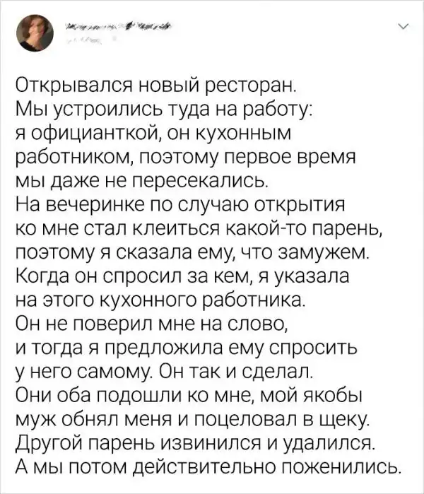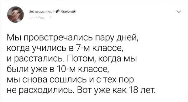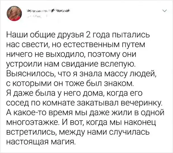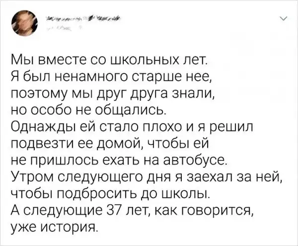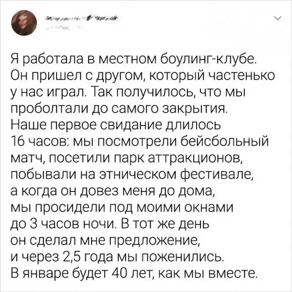 Когда вы появляетесь со своей второй половинкой в новой компании, то обязательно про звучит вопрос: "о, расскажите, как вы познакомились". У каждой пары есть своя история и многие из них весьма забавны. Собственно, именно этому и посвящен этот маленький тред в Твиттере.