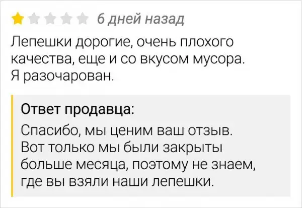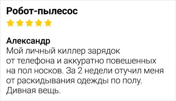 Сегодня отзывы играют большую роль для покупателя. Ведь именно на слова реального человека могут убедить потенциального клиента совершить покупку. Но порой такие отзывы пишутся с изрядной долей юмора. Возможно, они не так информативны, но отлично поднимают настроение.