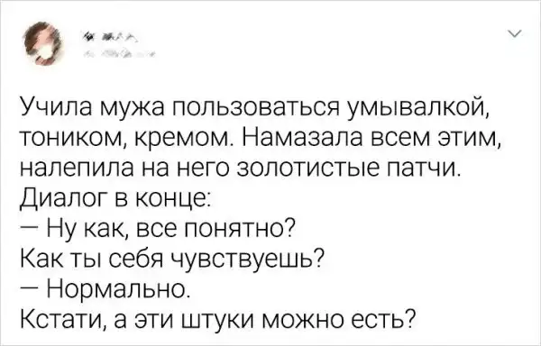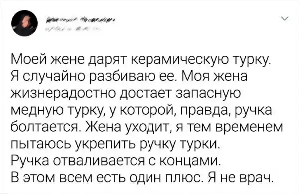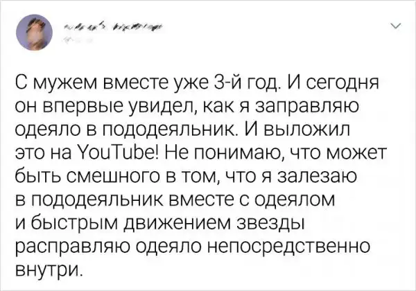 Как говорится, "хорошее дело браком не назовут". Да, действительно совместная жизнь - штука непростая. Но все-таки, если в паре все в порядке с чувством юмора, тогда все будет хорошо. Ведь без маленьких чудачеств наших вторых половин, жизнь казалась бы скучной и пресной.