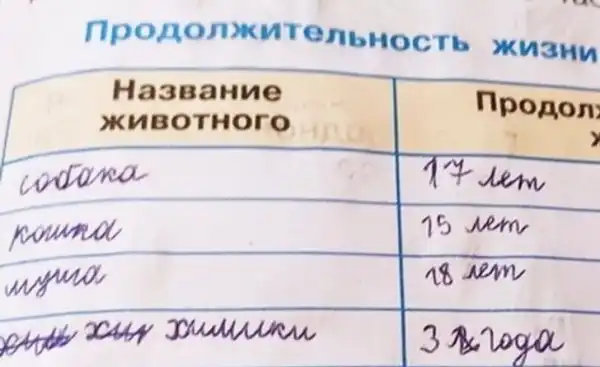 Бедные химики... Столбцы в таблице — «Название животного» и «Продолжительность жизни».