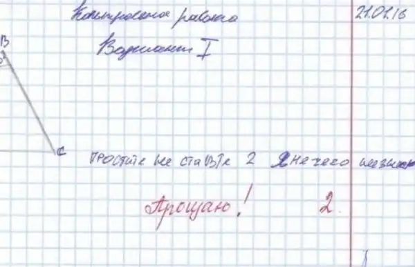 Когда учитель понимающий, но непреклонный. «Простите не ставте 2. Я нечего не знаю». «Прощаю!»