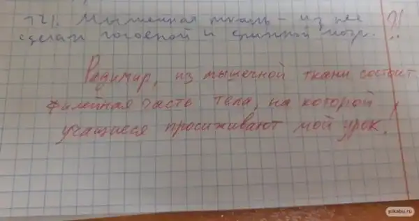«На второй пачке тетрадей, обнаруживая подобные перлы, ловишь небольшую истерику». «Мышечная ткань — из нее сделан головной и спинной мозг». «Радимир, из мышечной ткани состоит филейная часть тела, на которой учащиеся просиживают мой урок!»