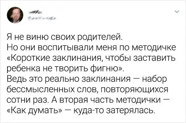 К сожалению, многие родители готовы осудить кого угодно, но только не себя, если их ребенок совершит какую-нибудь ошибку или шалость. Мол, виновны учителя, соцсети и видеоигры, "неправильные" одноклассники и ребята во дворе. Но в действительности вся ответственность лежит на родителях, которые всего лишь одной фразой могут травмировать ребенка навсегда. Ведь разум и душа маленького человека очень чувствительны. Но многие родители продолжают травить их изъеденными и токсичными штампами, которые уже давно пора забыть. Один пользователь Твиттера, который работает карьерным консультантом, на своем опыте испытал, как типичные родительские фразочки портят жизнь детям. Он составил список таких стереотипных наставлений, которые пора оставить в прошлом.