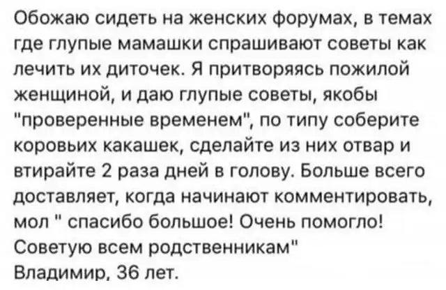 Стыдоба, срамота и непотребство. Да, это новые безумные истории с женских форумов. Несчастные барышни, а иногда и мужчины, продолжают терзаться и страдать от несправедливости судьбы. Ответы на суть мироздания, они по-прежнему ищут у мудрых старожил тематических дамских сайтов.