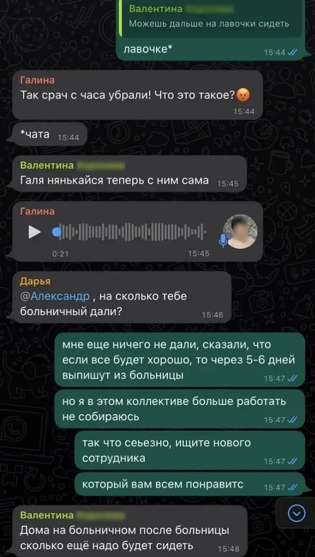 Многие работодатели говорят своим новеньким сотрудникам, что у них не просто рабочий коллектив, а настоящая "семья", где все друг за друга горой. После таких слов стажеру лучше всего будет сразу бежать от них подальше, ибо, как правило, дружными отношениями там даже не пахнет. Правду жизни рассказал один сотрудник из известной в России сети алкомаркетов. Парень написал в рабочий чат, что ему вырезали аппендикс и, по понятным причинам, на работу у него выйти не получается. В итоге на него очень грубо наехали коллеги, так как из-за этого у них "сдвинулись" отпуска. Начальство поддержать парня также не спешило.