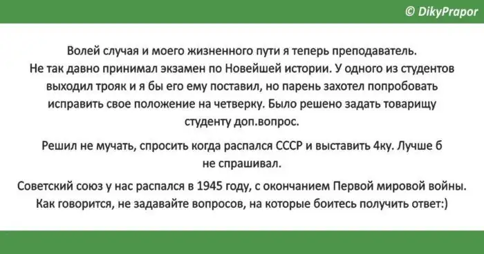 Студенчество — самый трудный и бесшабашный период в жизни человека. Забавные истории, рассказанные бывшими студентами и их преподавателями.