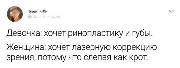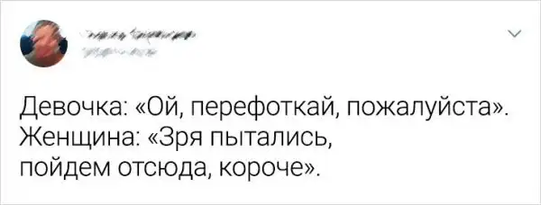 В Твиттере уже довольно давно гуляет забавный мем, в котором показывается разница между девочкой и женщиной. В итоге получился весьма смешной и очень даже жизненный тред, в которых сравниваются наивные девчонки и умудренные опытом дамы.