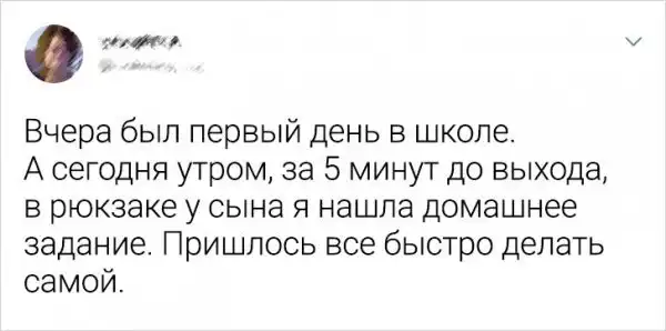 В первую неделю сентября у многих взрослых где-то в глубине души резко просыпается тревожное чувство, что нужно снова собираться в школу. Но оно быстро проходит, когда в школу нужно собирать уже собственных детишек. Пользователи Твиттера решили поделиться забавными мыслями о начале учебного года. Давайте посмотрим.