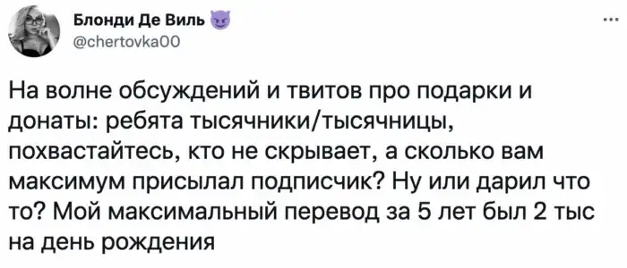 В Твиттере, как и других соцсетях, есть свои лидеры мнений. У них много подписчиков, чаще всего они знакомы с другими блогерами, их твиты набирают много лайков и комментов. Но что это для них: хобби или реальная работа? Мы решили выяснить, какие подарки им когда-либо приходилось получать от поклонников.
