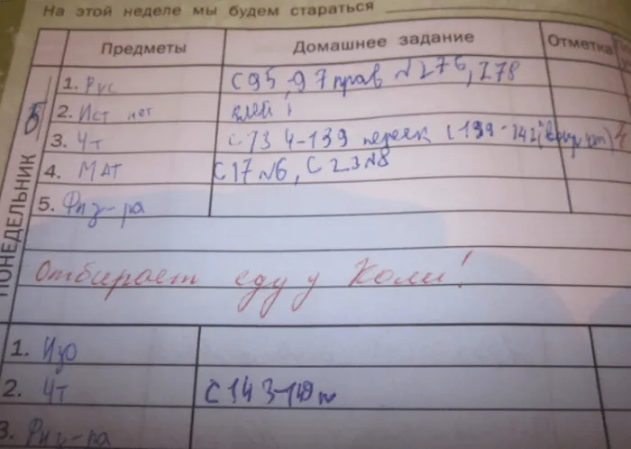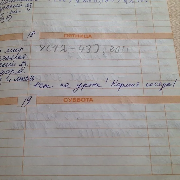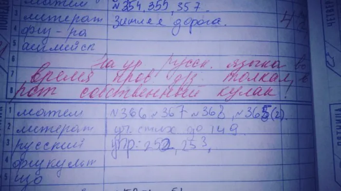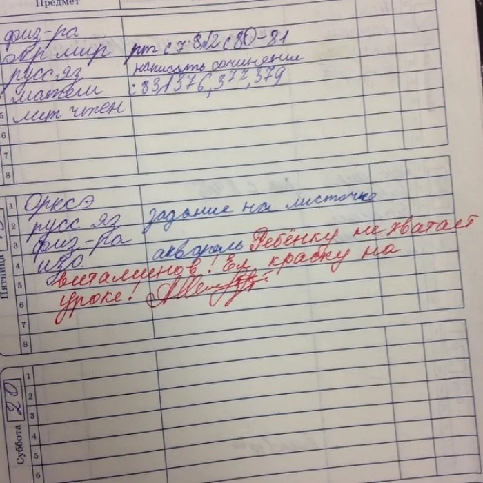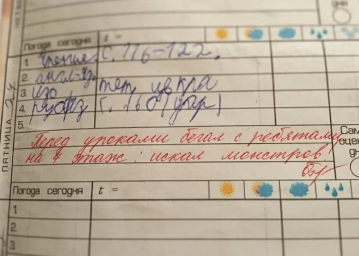 Запись замечания в школьный дневник (нередко предполагающая и пламенное послание родителям) — самая частая мера, которая позволяет привести учеников в чувства. Однако нередко учителя, находясь в плену негодования и раздражения, оставляют на полях крайне странные и смешные записи. Читая некоторые из них, просто невозможно сдержать слёзы от смеха. Предлагаем вам тоже взглянуть на них и поднять себе настроение!