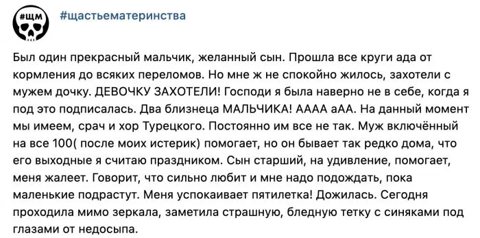 6. Но мы тут не для того, чтобы кого-то осуждать, а познакомиться с историями реальных матерей, а не тех, у кого в профиле написано "Счастливая мама 3 сыновей"