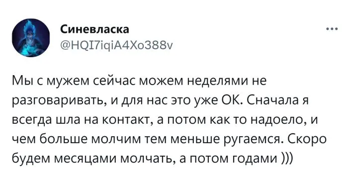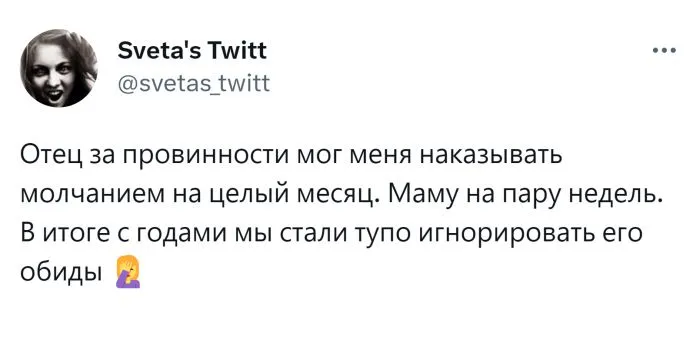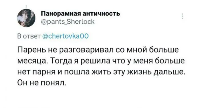 1. Девушка рассказала, что бывший муж на неё обиделся и решил наказать молчанием