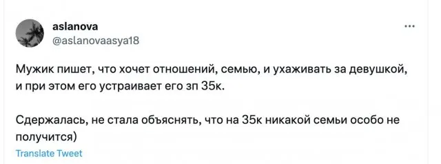 В соцсетях обсуждают зарплату мужчины в 35 тысяч, который хочет семью