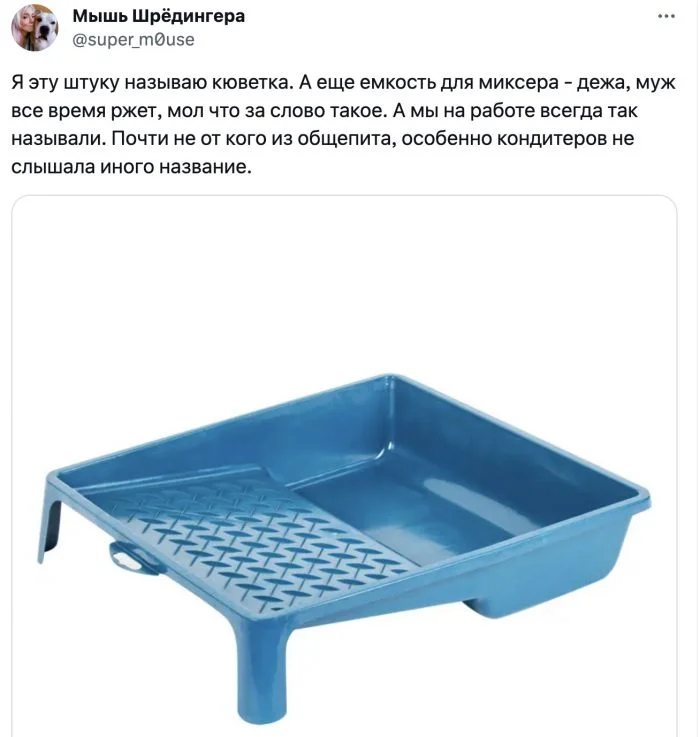 В каждом регионе и даже семье предметы называют по-разному. Пользователи Твиттера открыли какой-то ящик Пандоры, рассуждая, как называется посуда для еды и краска для коррекции текста))))