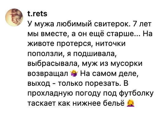 Девушки в комментариях утверждают, что разбирать вещи мужа - не их прерогатива, ведь жена не является мамой.