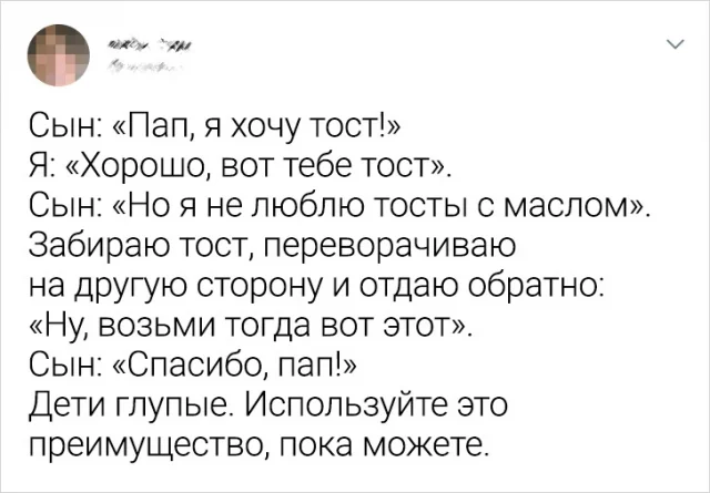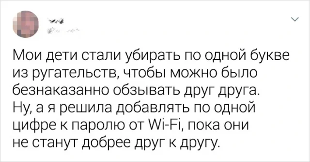 Давайте поднимем себе настроение и взглянем на новую подборку забавных твитов, посвященных теме воспитания. Пользователи из просторов интернета решили поделиться воспоминаниями о воспитательских хитростях, которыми пользовались их родственники и учителя в школе. Приятного просмотра!