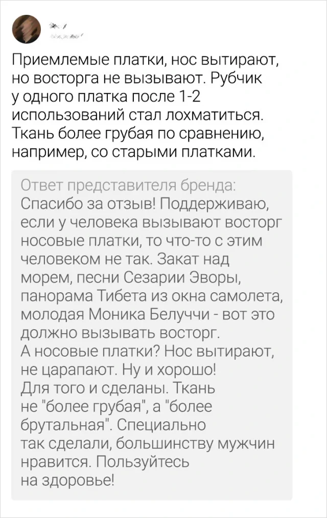 Вы обычно оставляете отзывы на онлайн-рынках после покупок? Если да, то, вероятно, ваши комментарии касаются лишь самого товара. Ведь цель информативных обзоров - помочь другим покупателям принять правильное решение. Однако, кто нас обманывает? В наше время отзывы, как правило, читаются с целью развлечения, ведь там так много забавных "перлов".
