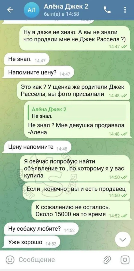 Покупательница приобрела щенка Джека Рассела у заводчика за 15 000 рублей, но, вырастив, пес оказался крупным двортерьером.