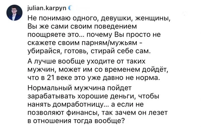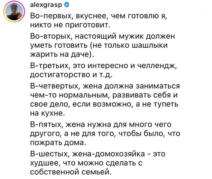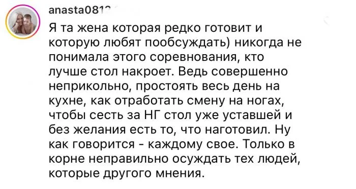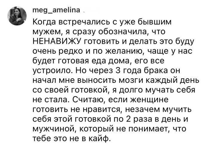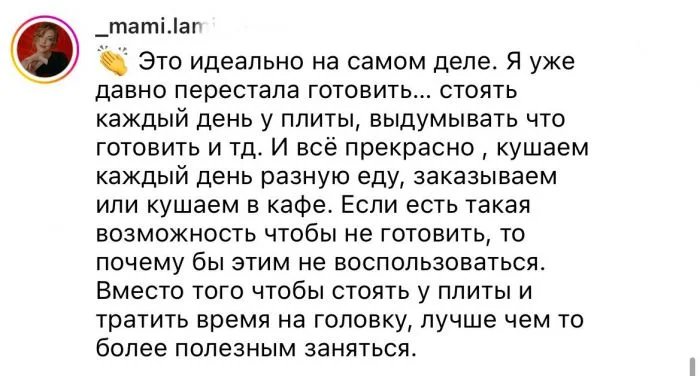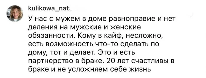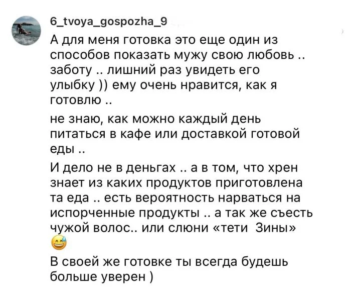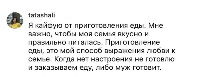 1. В итоге люди высказали своё мнение о том, должна ли женщина готовить