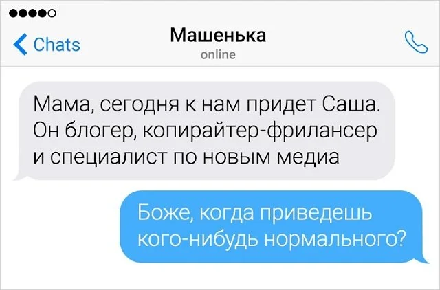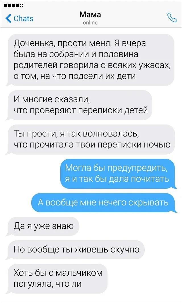 Сегодня у большинства людей большего всего общения проходит в мессенджерах. И, пожалуй, несложно догадаться какие чаты там самые активные. Переписки с родителями, конечно же! Порой эти диалоги бывают очень веселыми. Итак, милости просим в новую подборку забавных переписочек.