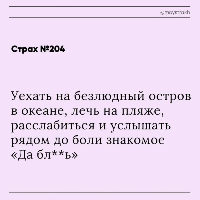 Страхи бывают разные. Кто-то боится пауков, а другие опасаются прожить жизнь, как родители. Авторы страницы "Мой страх" регулярно публикуют откровения пользователей: они милые, нелепые и очень реалистичные. На сообщество подписаны 149 тыс. человек.