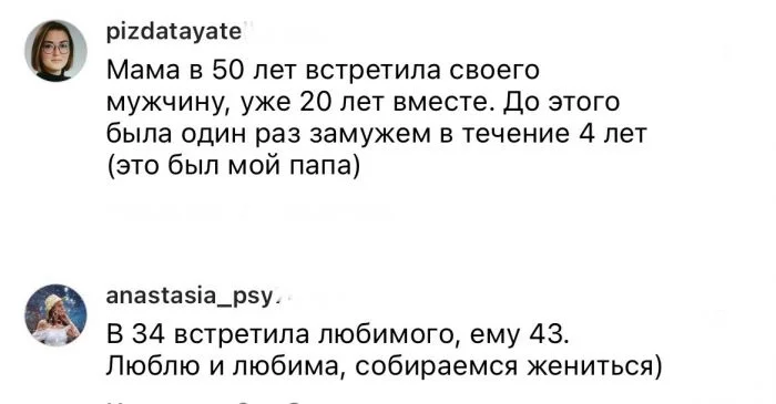 3. В комментариях было много тех, кому за 30, но ещё не успел встретить своё счастье