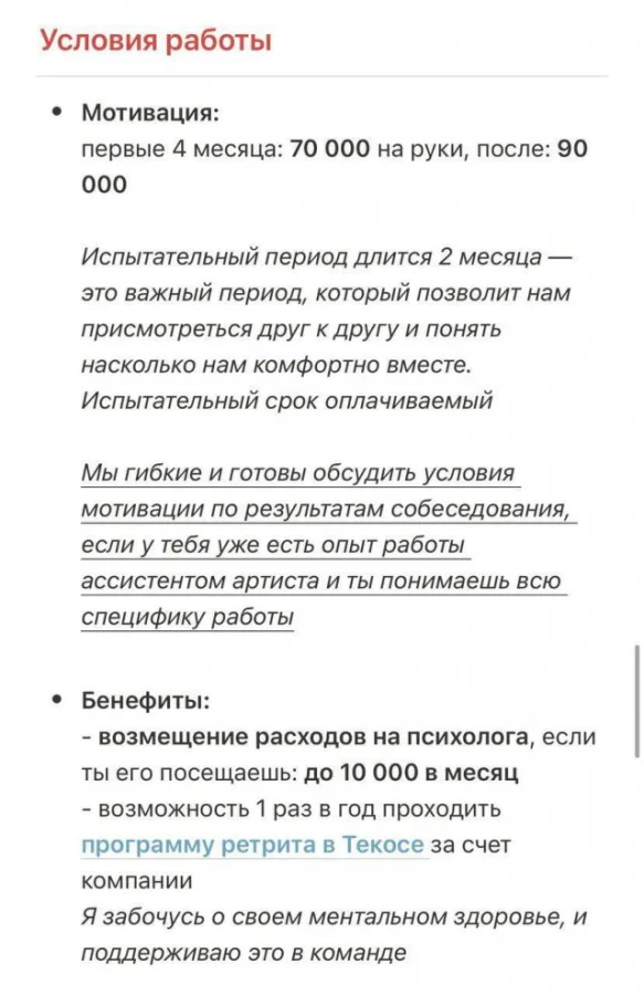 Вакансия от Ирины Горбачевой: поиск ассистента с минимальной зарплатой