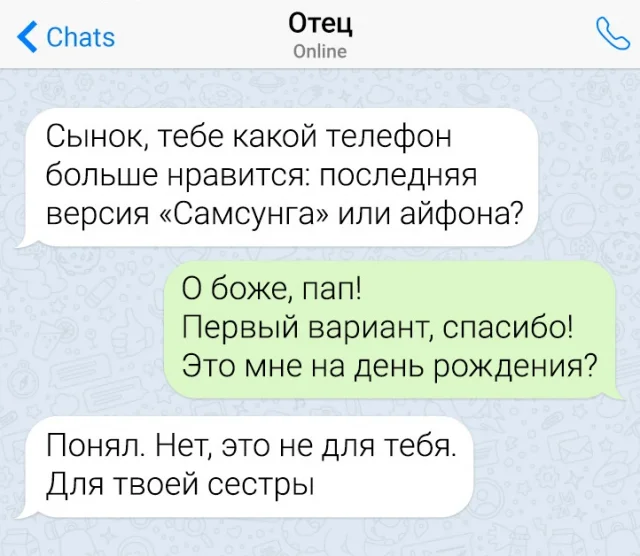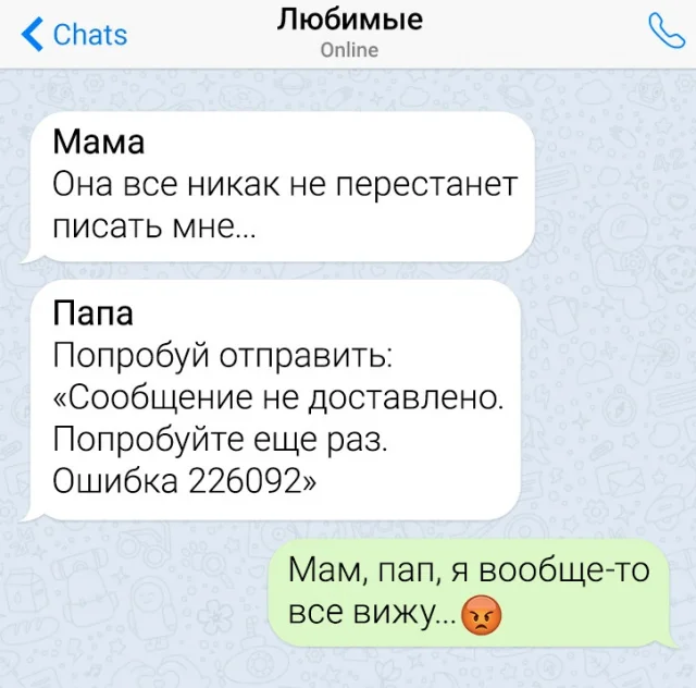 Все-таки мессенджеры - хорошая штука. Благодаря им мы всегда можем быть на связи с родителями. Поэтому "родительские" чаты, пожалуй, есть в каждом смартфтоне. И поскольку мы болтаем с родными каждый день, в диалогах часто происходит масса забавных ситуаций. Собственно, так и получаются новые забавные подборки переписок! Давайте посмотрим.