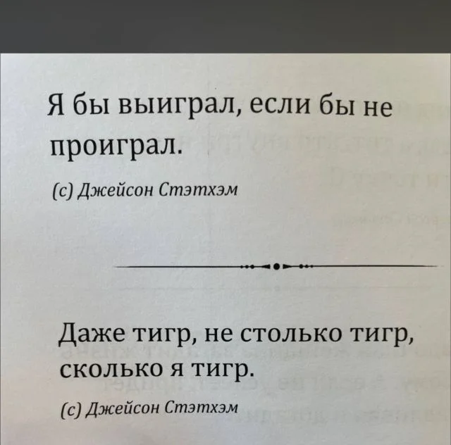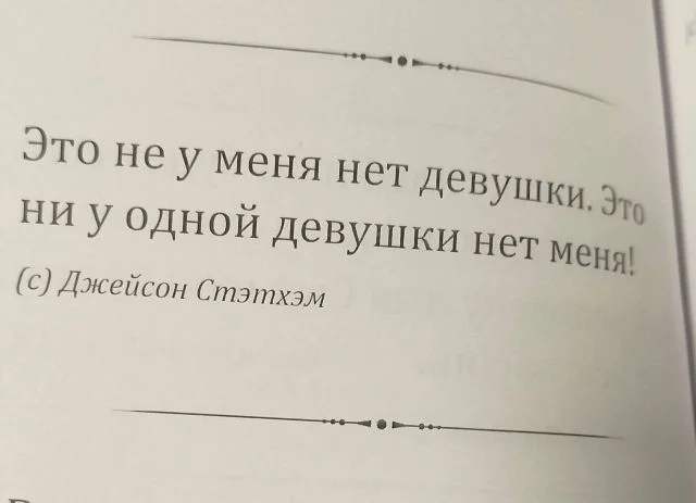 Никто не ждал, никто не верил. Но это случилось. Официально! В России на полках книжных магазинов нашли цитатник Джейсона Стейтема. Британский актер, вряд ли получит хотя бы копейку с этих продаж. Но будучи великим мыслителем он наверняка поймет, что негоже просить денег за мудрость. Ибо мудрость - бесценна.