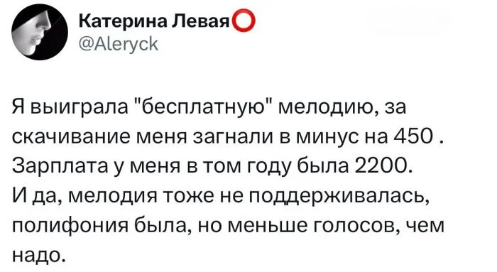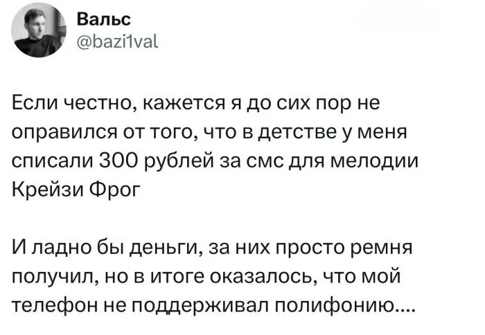 В нулевых из каждого экрана сыпались предложения, чтобы скачать мелодию на телефон. Нужно было лишь отправить куда-то смс. Правда не все знали, что это стоит немало денег. В итоге герои нашей подборки навсегда запомнили один случай из детства - и поделились им с нами.