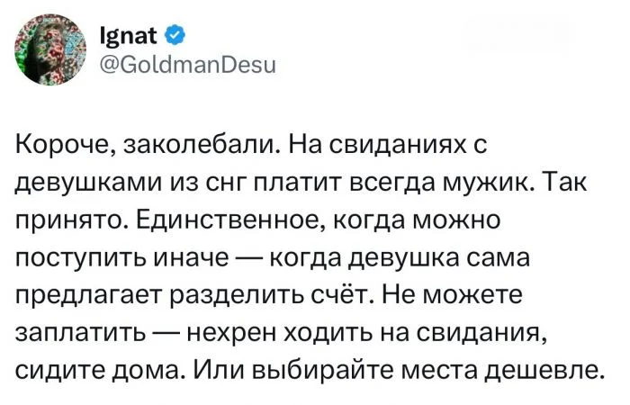 4. Есть те, кто обозначили, что платить НЕ за свою девушку - не очень