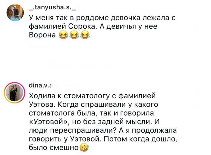 Иногда фамилии вызывают взрыв смеха. И тяжело от этого только владельцам. В этой статье пользователи поделились самыми весёлыми неурядицами, которые случались с владельцами говорящих фамилий.