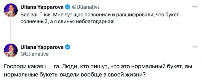 1. СЕО и экс-ведущая EuropaLive опубликовала фото букета, который ей не понравился