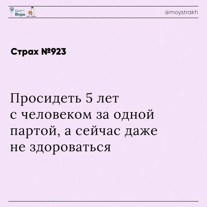 Страхи — это то, с чем сталкиваются многие, но никто не хочет им поддаваться. Проект "Мой страх" создан, чтобы помочь людям почувствовать себя не одинокими, демонстрируя, что у каждого есть свои фобии и даже самые обычные вещи могли когда-то нас пугать.